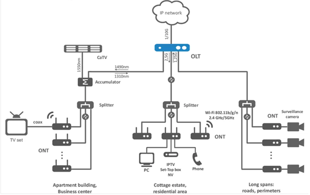 管理和控制:OLT通过通信协议与其他OLT以及ONT进行交互,实现对整个网络的管理和控制。这包括对设备的配置、监控、故障排查等功能,..网络的稳定运行。